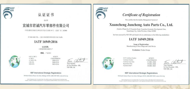 宣城市君誠(chéng)汽車(chē)零部件有限公司是專(zhuān)業(yè)生產(chǎn)各類(lèi)汽車(chē)鉸鏈及限位器的民營(yíng)企業(yè),總投資3000余萬(wàn)元,位于宣城高新技術(shù)產(chǎn)業(yè)開(kāi)發(fā)區(qū),緊鄰宣廣、宣蕪高速公路,地理位置優(yōu)越,交通便捷。是“國(guó)家高新技術(shù)企業(yè)、知識(shí)產(chǎn)權(quán)貫標(biāo)企業(yè)、安徽省商標(biāo)示范企業(yè)、安徽省科技型企業(yè)”,已獲得國(guó)家發(fā)明專(zhuān)利18項(xiàng),實(shí)用新型發(fā)明專(zhuān)利4項(xiàng)。主要從事各類(lèi)汽車(chē)門(mén)鉸鏈及限位器的設(shè)計(jì)、研發(fā)、生產(chǎn)、和銷(xiāo)售,具有專(zhuān)業(yè)的合作團(tuán)隊(duì)。自2015年正式生產(chǎn)至今,已形成一整套完整的生產(chǎn)、質(zhì)量管理體系。并已通過(guò)國(guó)家強(qiáng)制性產(chǎn)品認(rèn)證“3C”體系認(rèn)證及IATF16949國(guó)際質(zhì)量體系認(rèn)證。在生產(chǎn)設(shè)備上,公司擁... 【查看詳細(xì)】